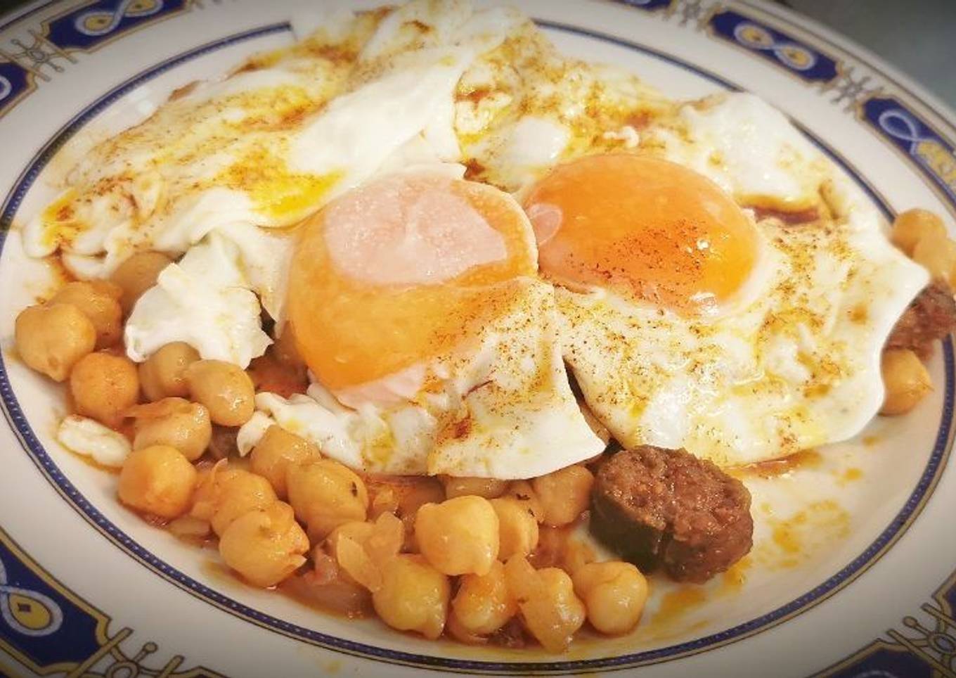Garbanzos con Güeñas y Huevos fritos al aceite de Pimentón
