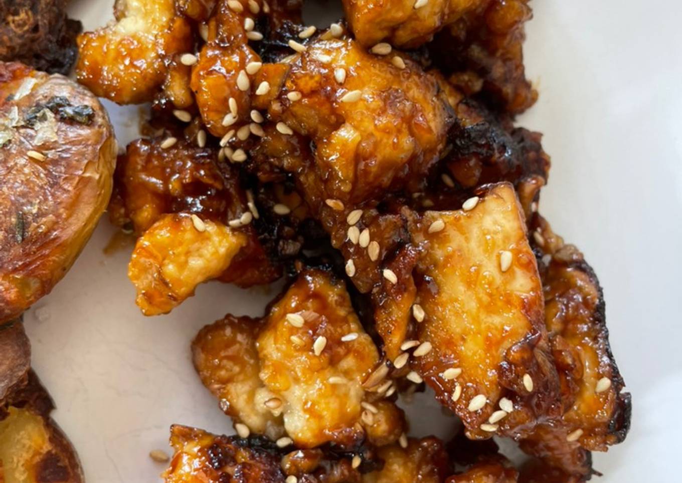 - Afegir el tofu dorat fins que s’impregni bé de la salsa