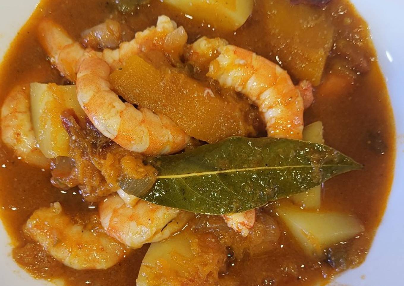 - Le agregas la hoja de laurel, la pimienta, el ajo y el comino y tapas la olla que haga chub chub y lo dejas 15 minutos m谩s o seg煤n cantidad que hayas metido de patatas..... pinchar con un tenedor y si est谩n blandas pues 5 minutos antes de apagarla... agregas la gamba o los langostinos y se terminan de hacer con la calentor.