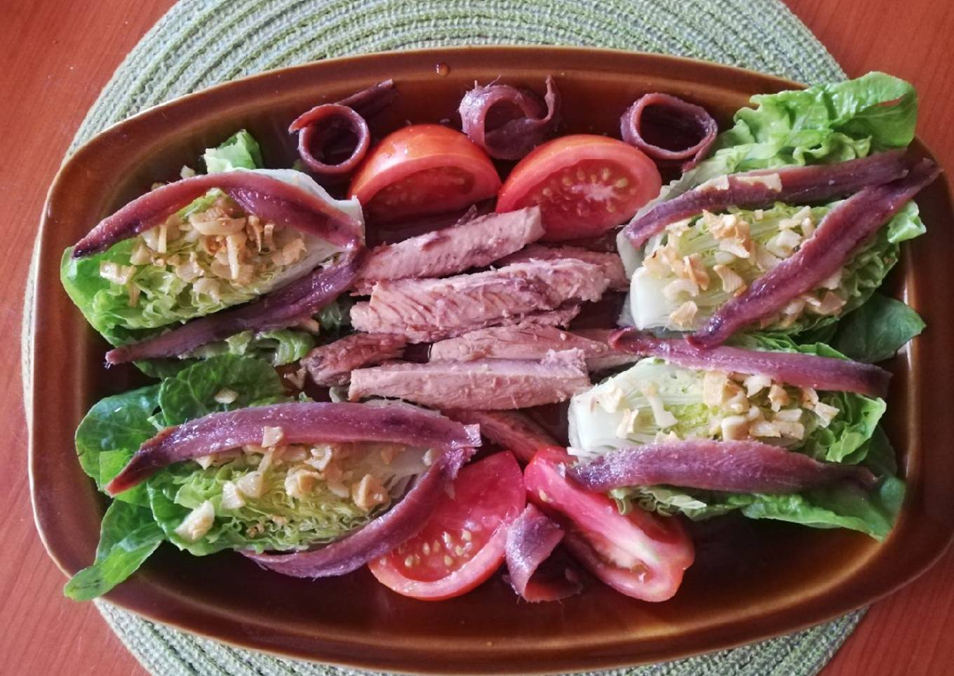 Ensalada de cogollos con ajitos, melva y anchoas 🥗