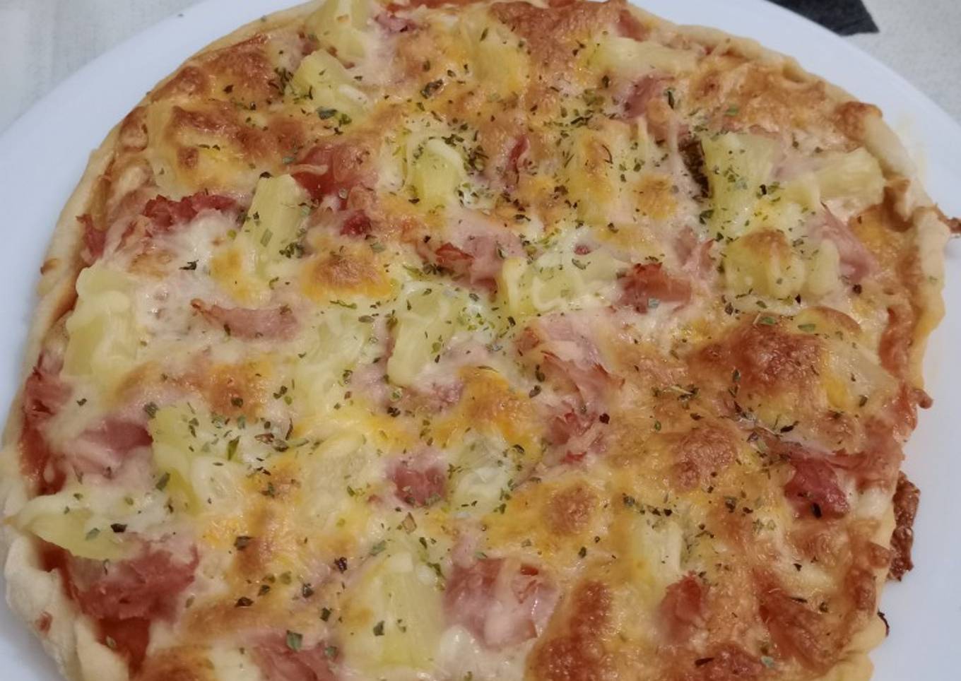 - Añade tus ingredientes preferidos, precalentar el horno 5 min y meter la pizza unos 15 minutos a 200°C, ya la vas mirando dependiendo de lo dorada que te guste.