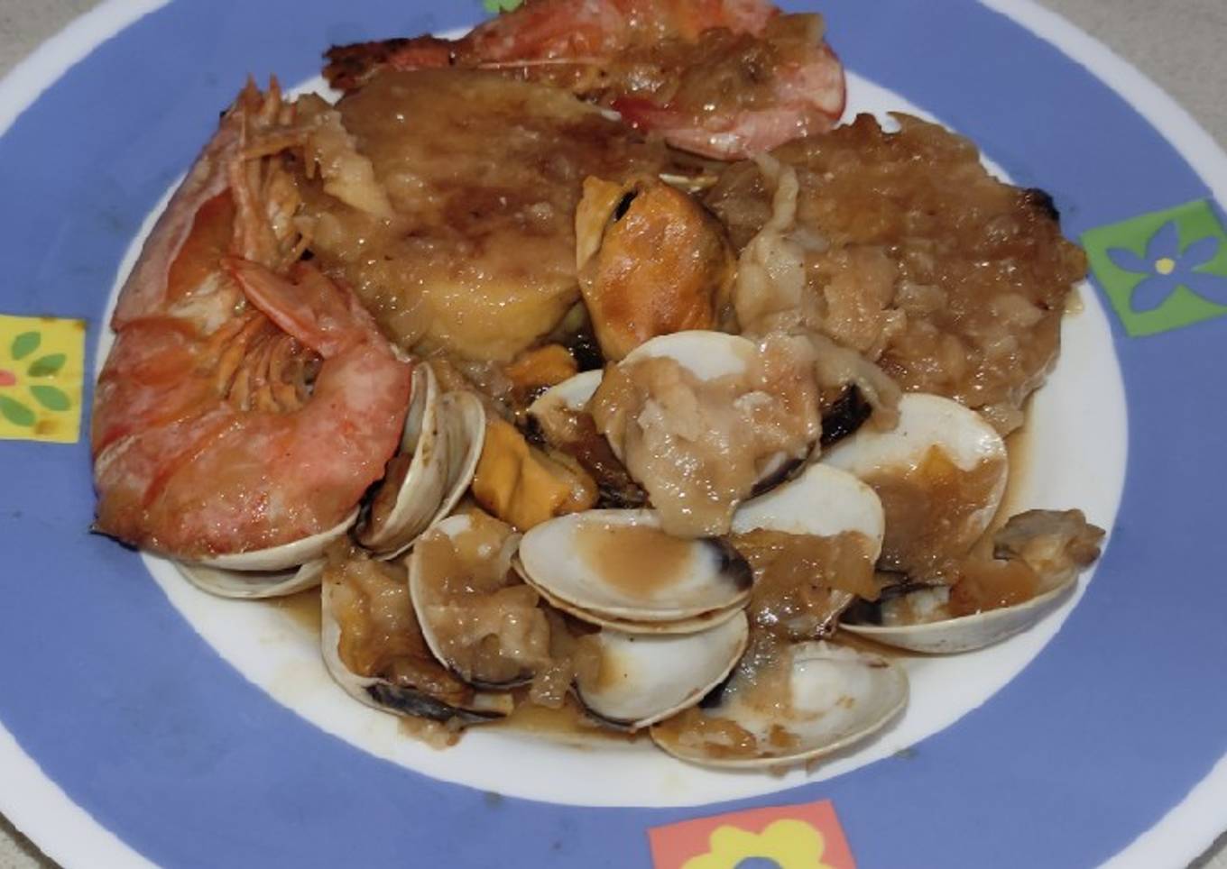 - Incorporar las almejas y los mejillones ya cocidos con un poco de sal. Esperar a que se abran las almejas