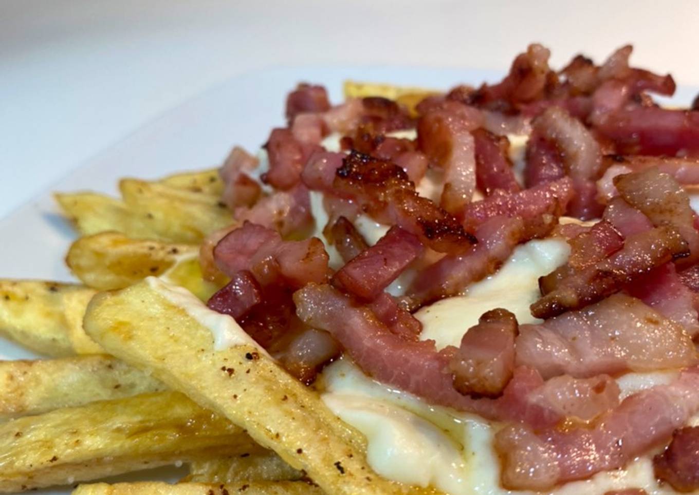 Hello everybody, hope you're having an amazing day today. Today, we're going to make a special dish, Patatas fritas con bacon, nata y queso. One of my favorites. This time, I will make it a little bit unique. This is gonna smell and look delicious.