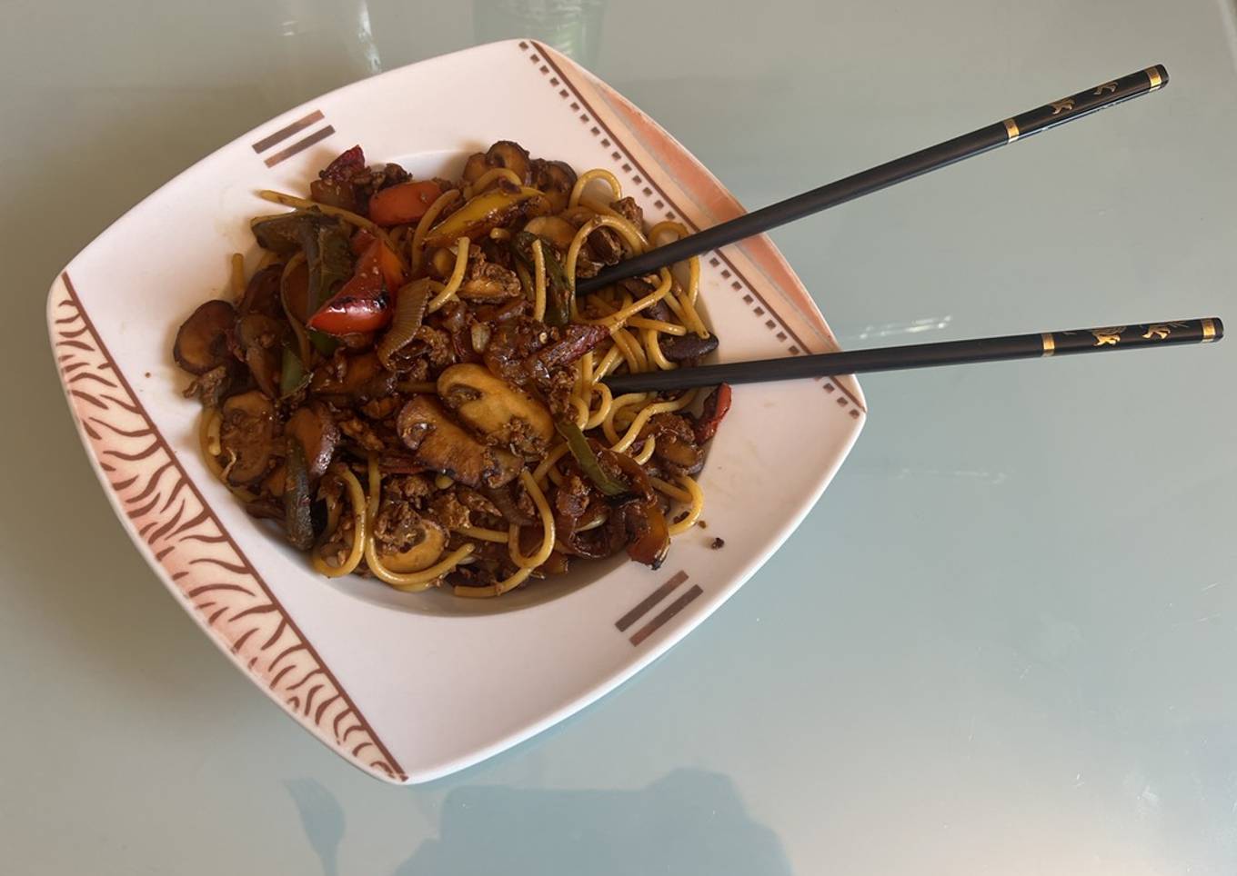 Me aparecía usar salsa de soja oscura (para cocinar), que es más espesa y concentrada y qué mejor opción que hacerla con unas verduras y un poco de pasta ☺️