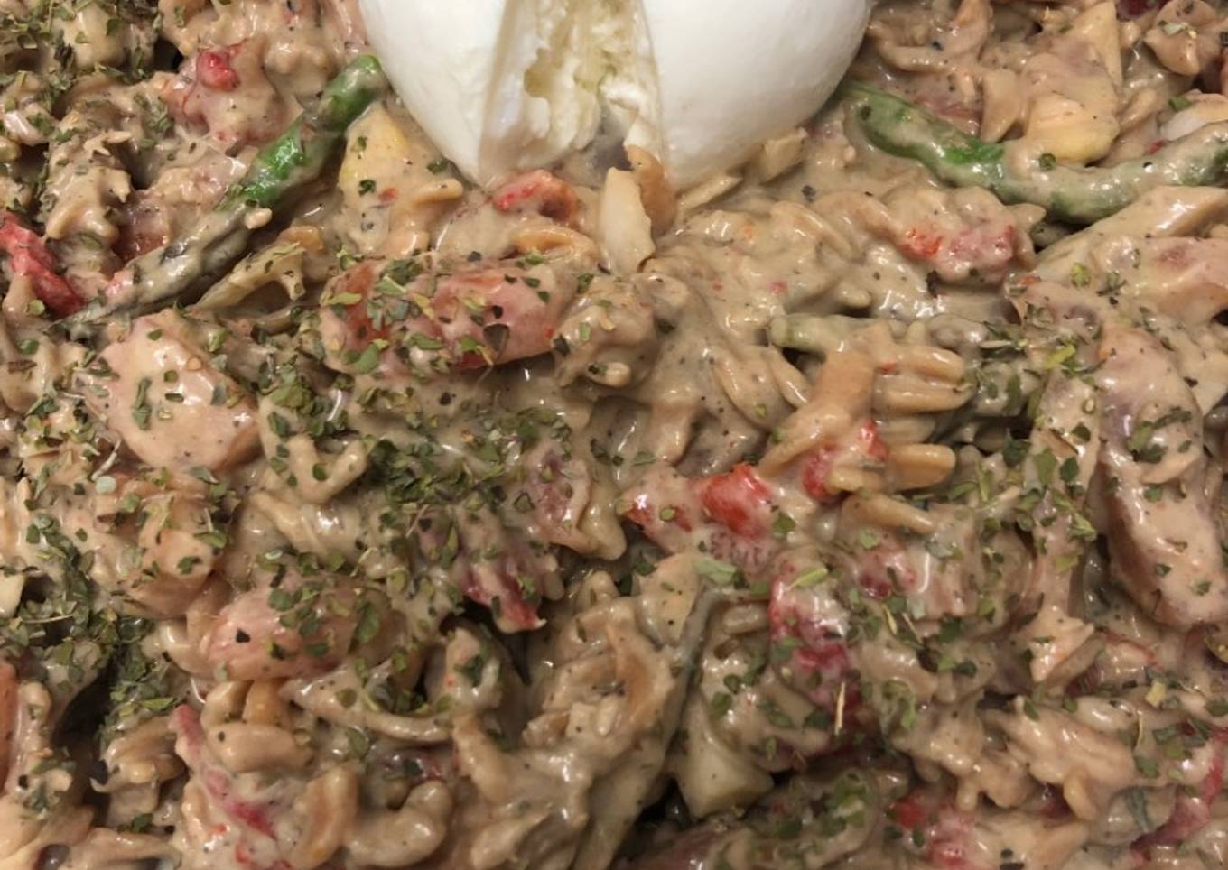 - Preparamos la salsa: ponemos todos los ingredientes en una batidora y batimos. Salpimentamos al gusto si fuese necesario. Ponemos la salsa en el bol. Removemos. Servimos en una bandeja con la burrata en medio. Que aproveche!!!