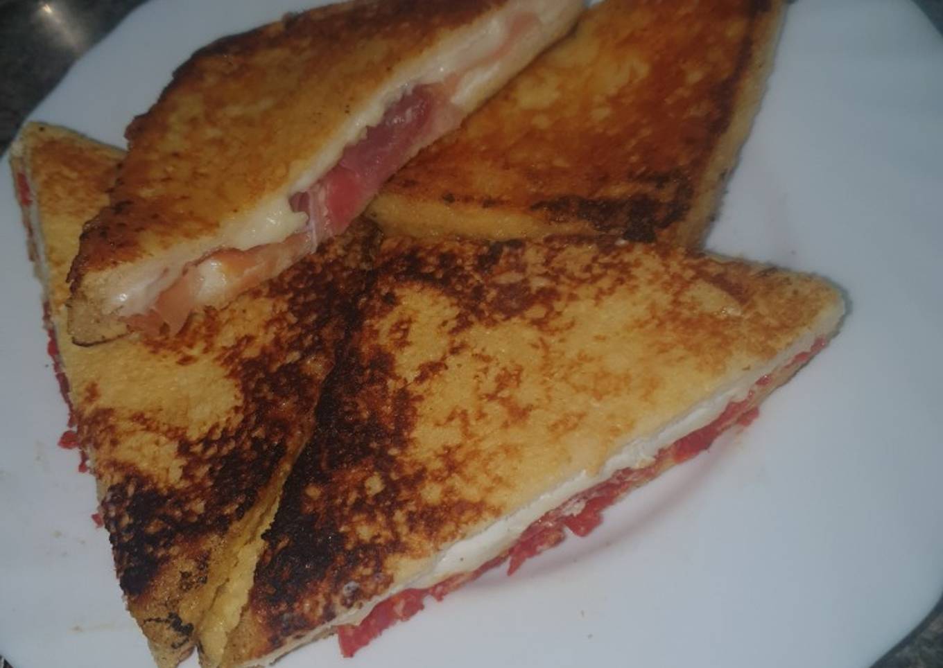 - Pon encima la otra rebanada de pan y pásalo por huevo, ponlo a fuego lento en una sartén y deja que se funda el queso lentamente..😋 que aproveche!!!