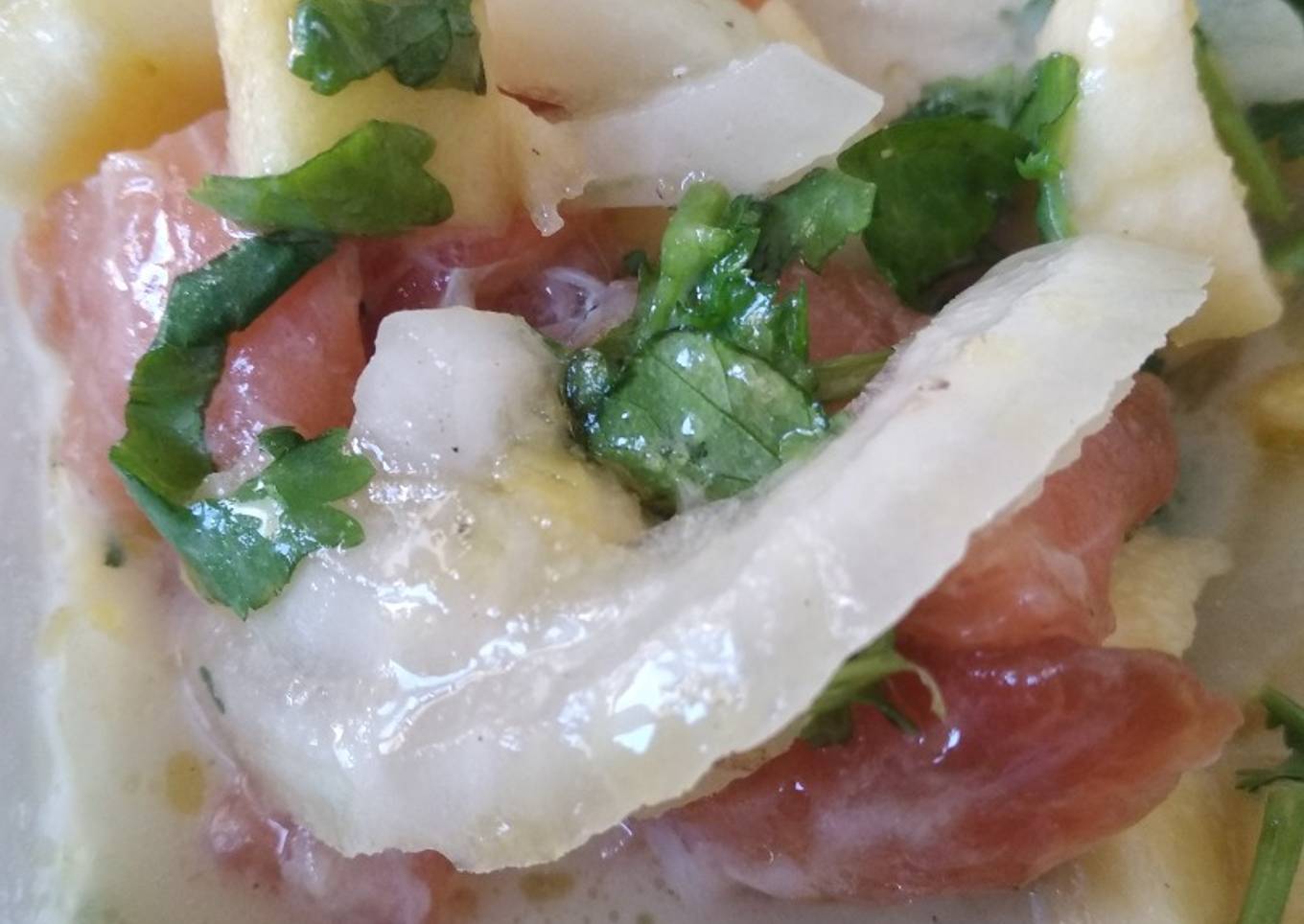 Hello everybody, hope you're having an incredible day today. Today, I will show you a way to make a special dish, Ceviche de salmón y manzana. It is one of my favorites food recipes. For mine, I will make it a bit unique. This is gonna smell and look delicious.