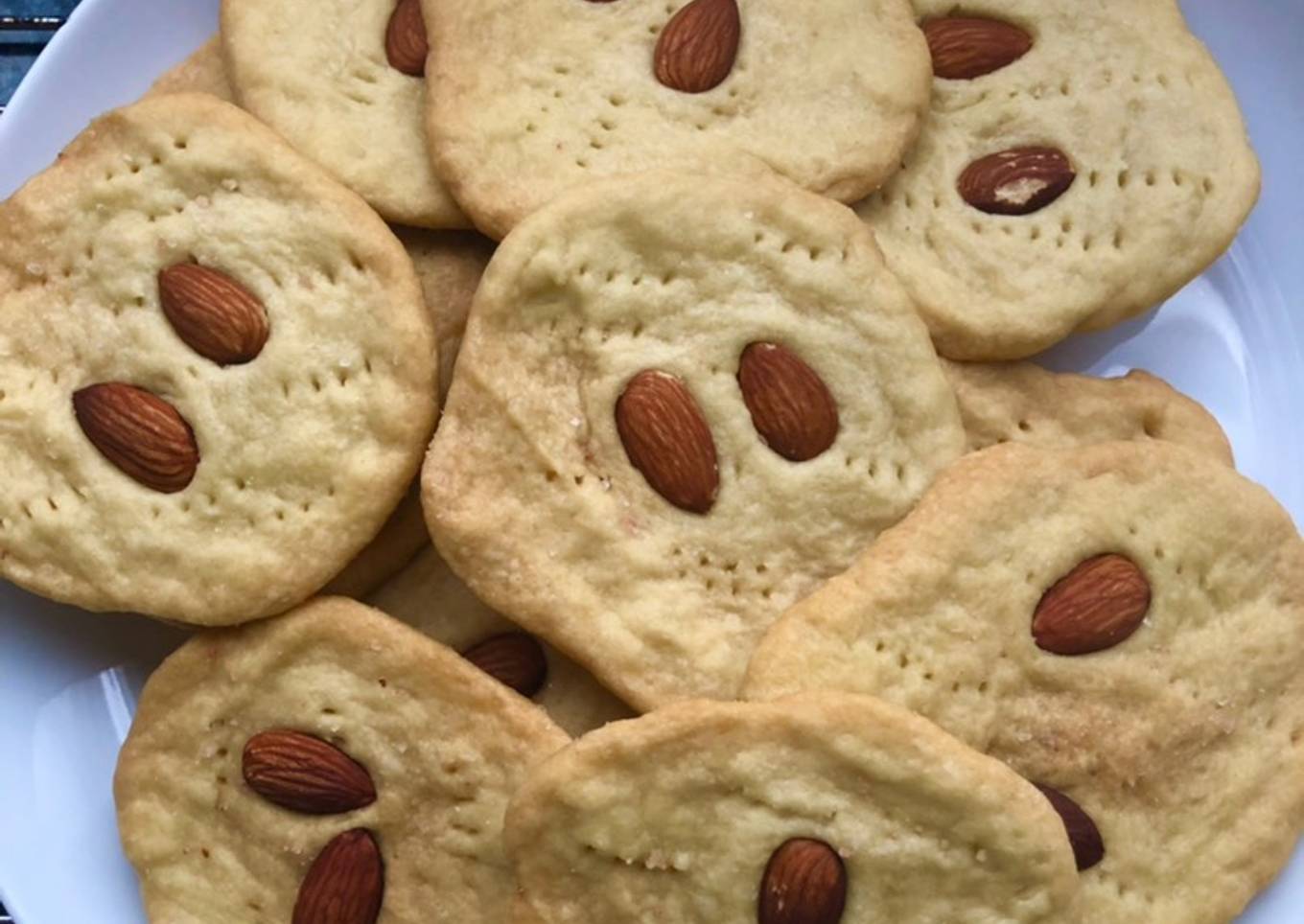 - Las pinchamos con un tenedor y colocamos 2-3 almendras, clavándolas muy bien para que no se despeguen a la hora de hornearlas.