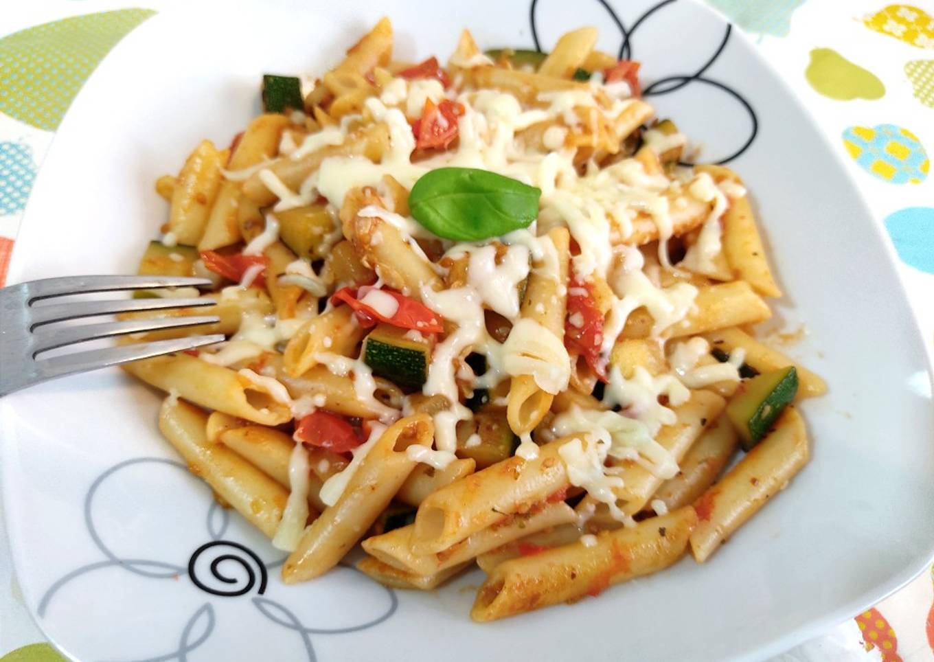 Macarrones con cherrys y calabacín
