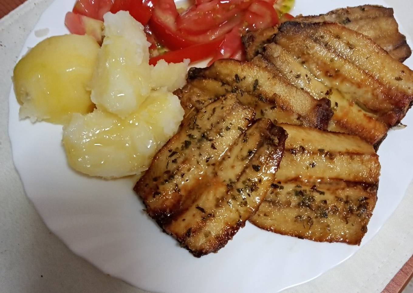 - Para acompañar: Papas cocidas y tomate