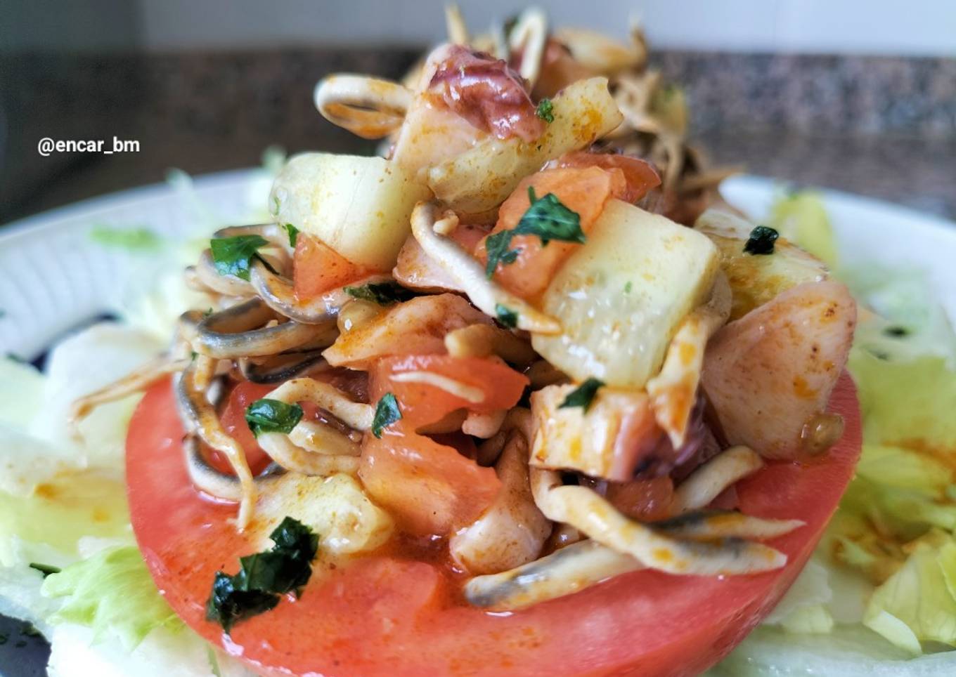 Hey everyone, hope you are having an amazing day today. Today, we're going to make a distinctive dish, Tomates rellenos de gulas y pulpo al pimentón. One of my favorites. For mine, I'm gonna make it a bit unique. This is gonna smell and look delicious.