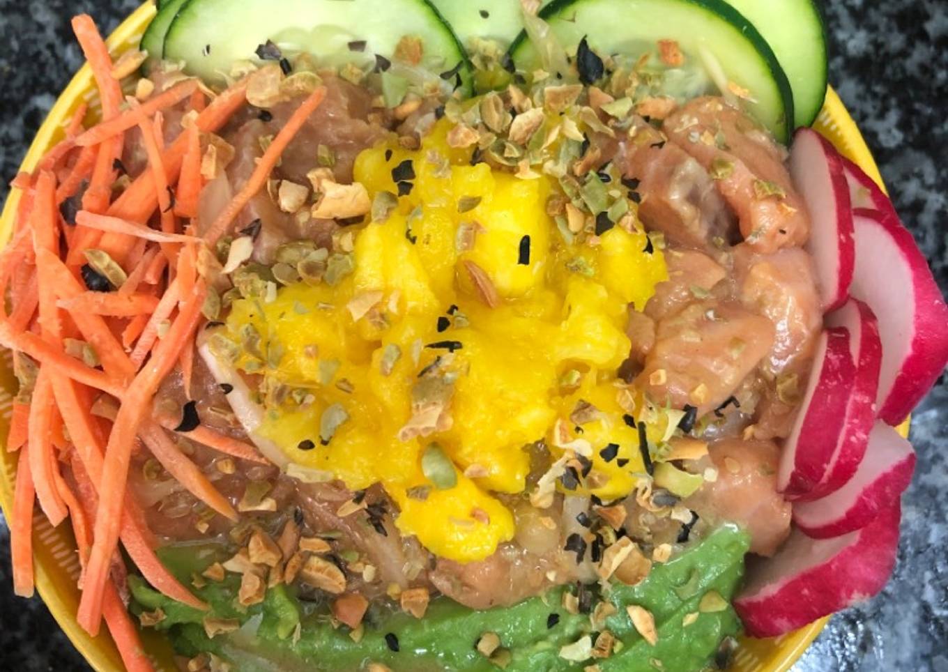 Hello everybody, I hope you are having an amazing day today. Today, I'm gonna show you how to make a distinctive dish, 408. Poke bowl de salmón (principal pescado). One of my favorites. This time, I will make it a bit unique. This is gonna smell and look delicious.