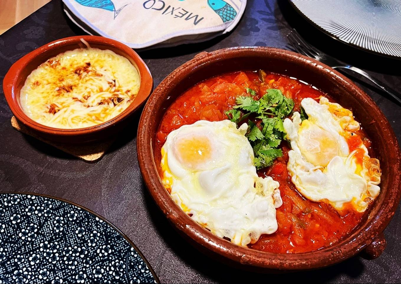 Huevos rancheros y cazuela de queso fundido con chipotle 🌶🌶🍅🍅🍳🍳