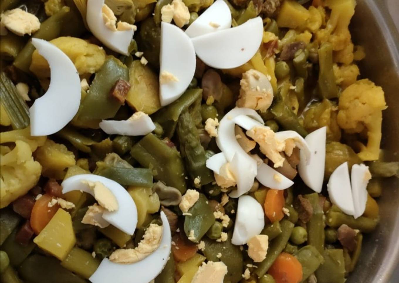 Es una simple menestra de verduras con un añadido de ternera y jamón