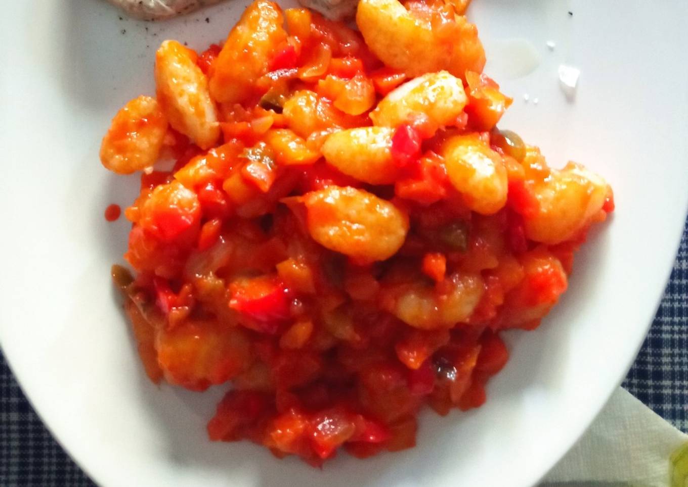As for the number of servings that can be served to make Gnocchi con salsa vegana is 2 raciones. So make sure this portion is enough to serve for yourself and your beloved family.