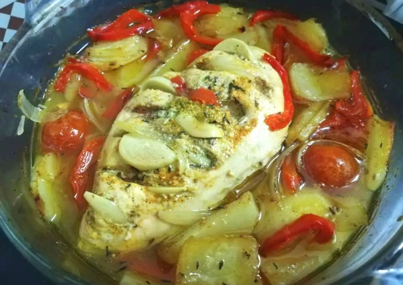 Hello everybody, hope you're having an amazing day today. Today, I'm gonna show you how to make a distinctive dish, Pechuga de pollo al horno con guarnición. It is one of my favorites. For mine, I am going to make it a little bit tasty. This is gonna smell and look delicious.