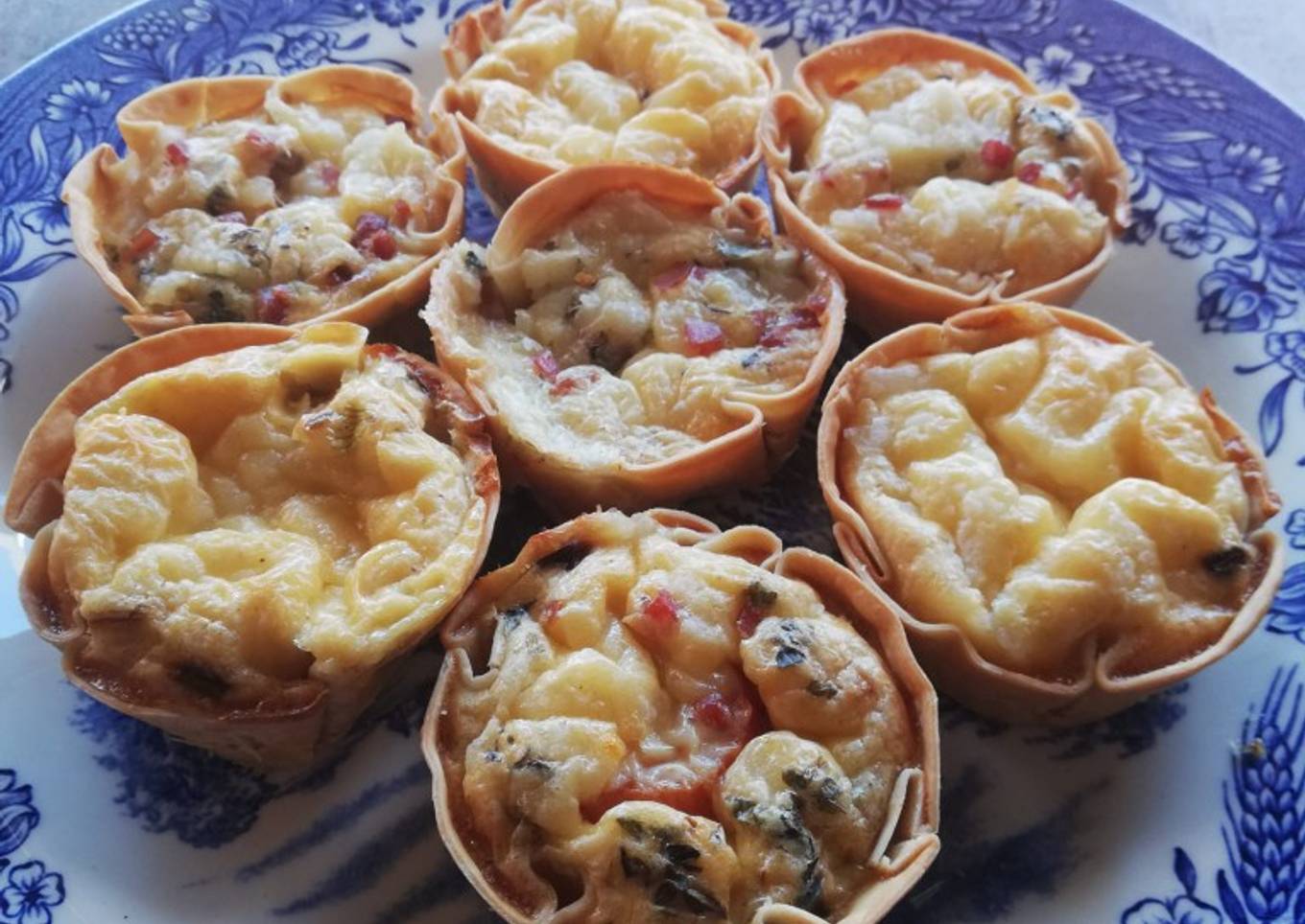- Precalentamos el horno a 180 grados y lo horneamos durante unos 35 minutos. Hasta que haya cuajado el relleno y las obleas estén crujientes. Y listo, ya tenemos unas tartaletas saladas monísimas para sorprender a nuestros invitados. Buen provecho.