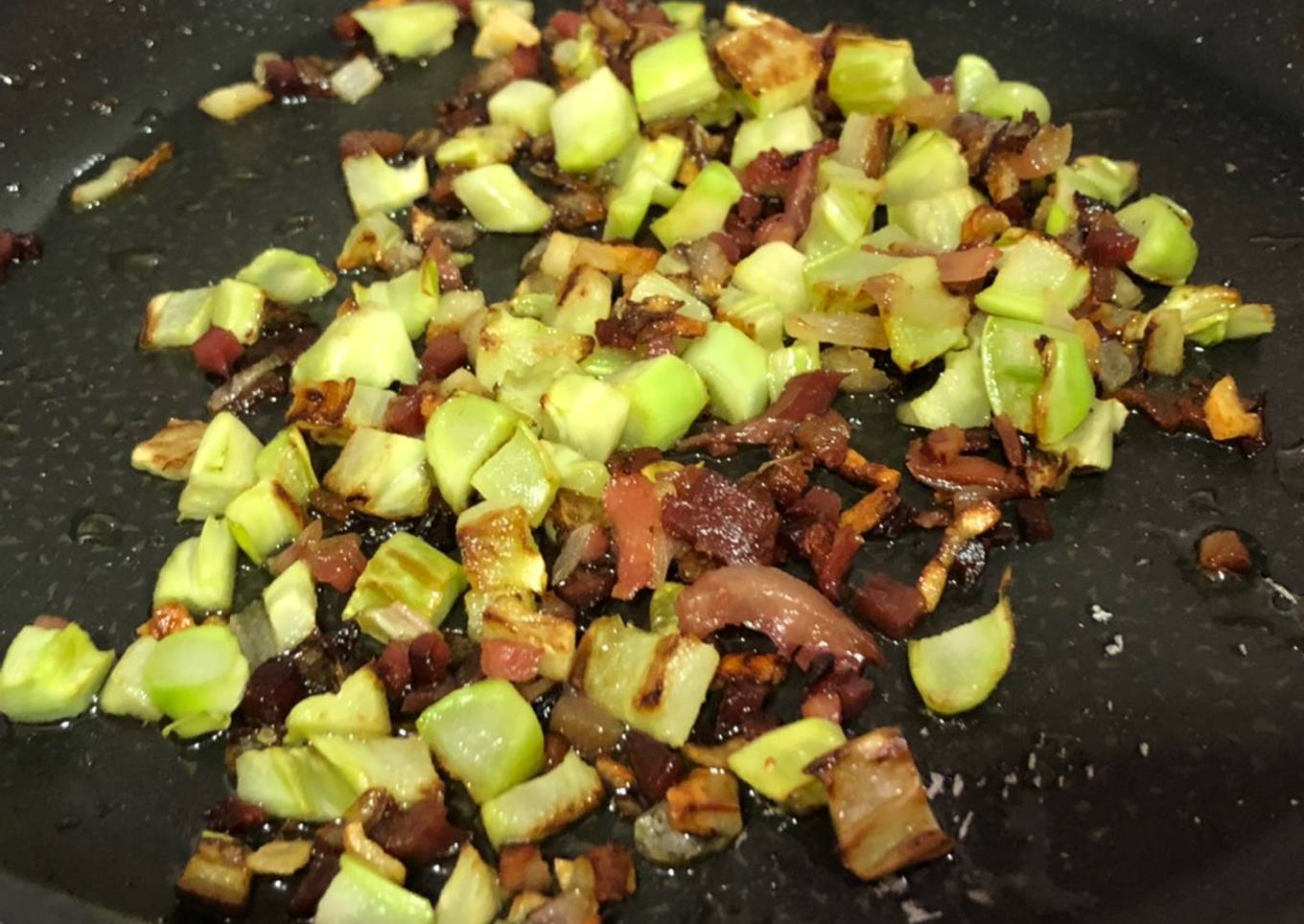 - Cuando vaya dotándose se añade el jamón serrano y cuando se tueste un poco ya lo tenemos
