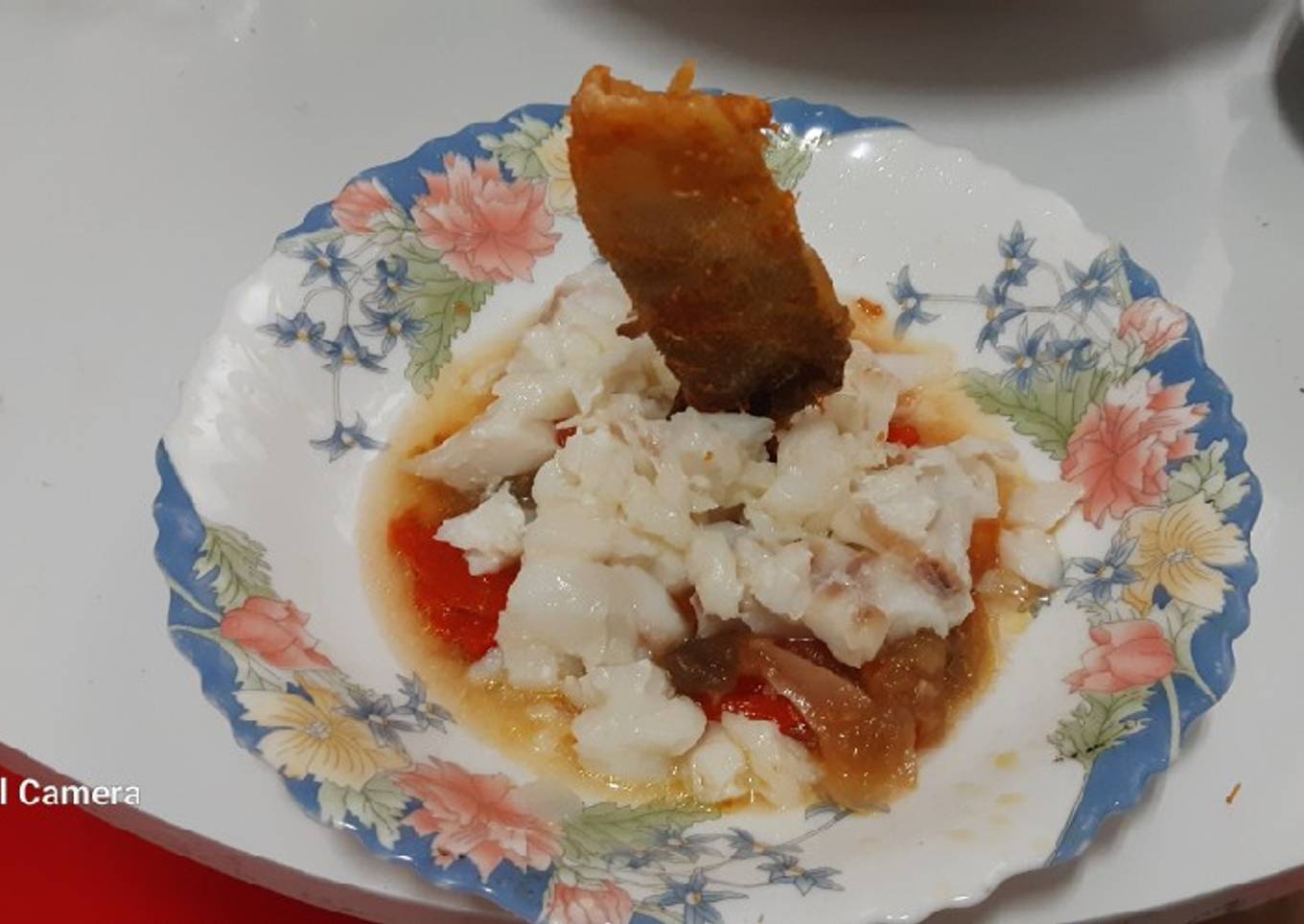 - Quitamos la pielnal bacalao, la sacamos bien y la reservamos.
