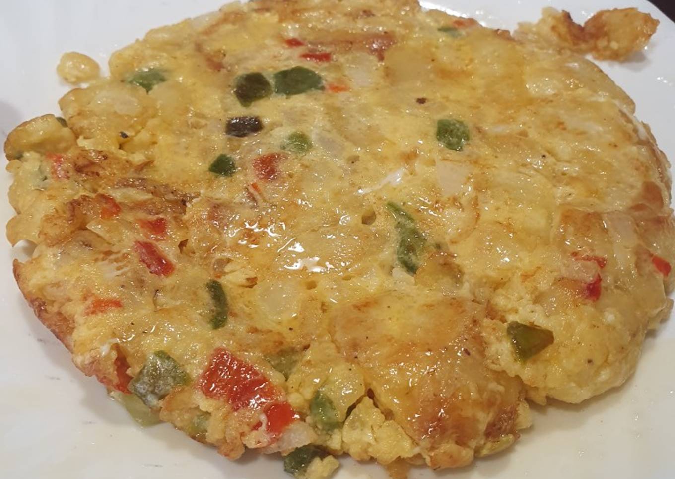 Tortilla de patata, cebolla, pimiento rojo y verde